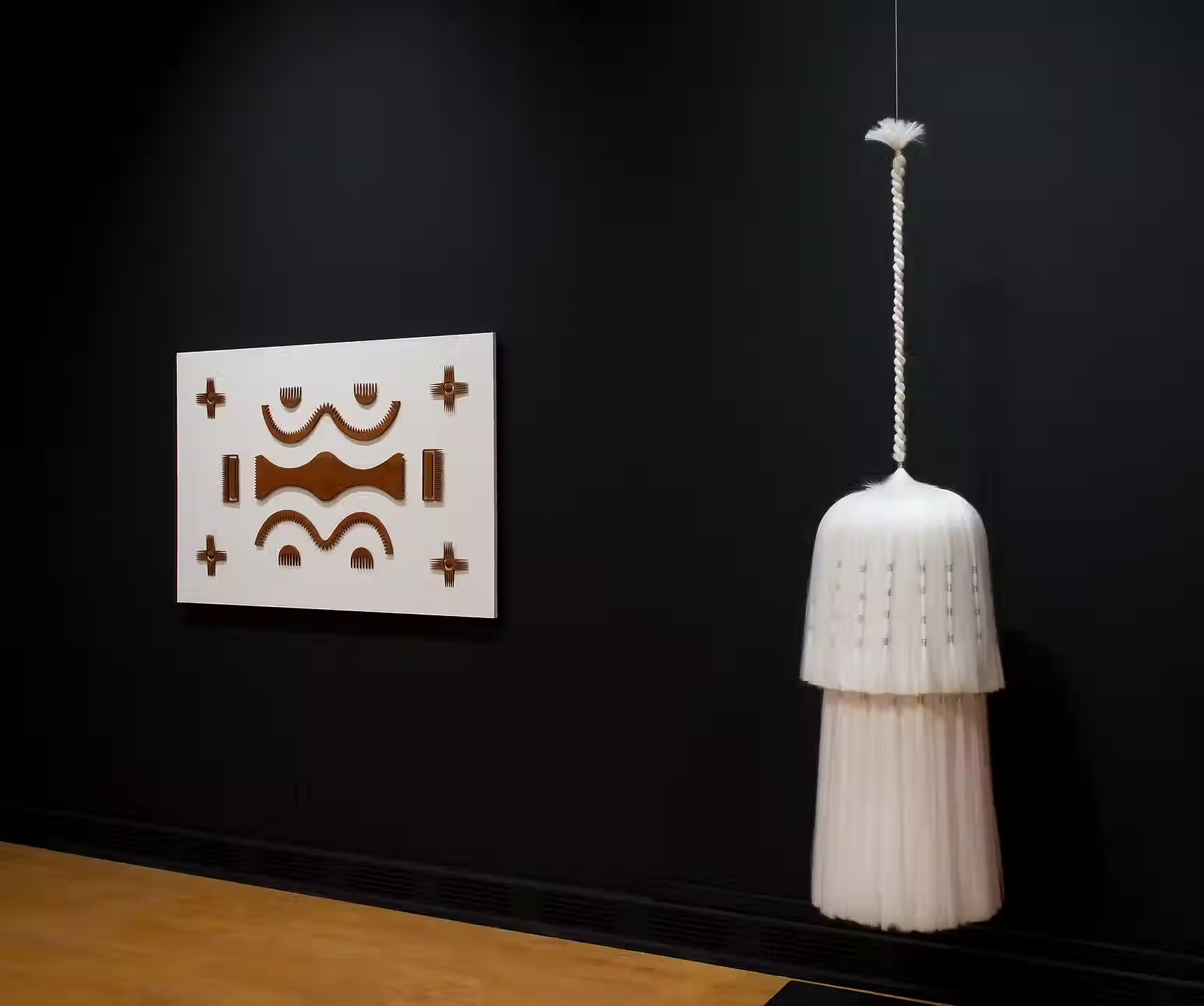 Image: Installation view, works by Sam Frésquez and Merryn Omotayo Alaka, photograph by Craig Smith
